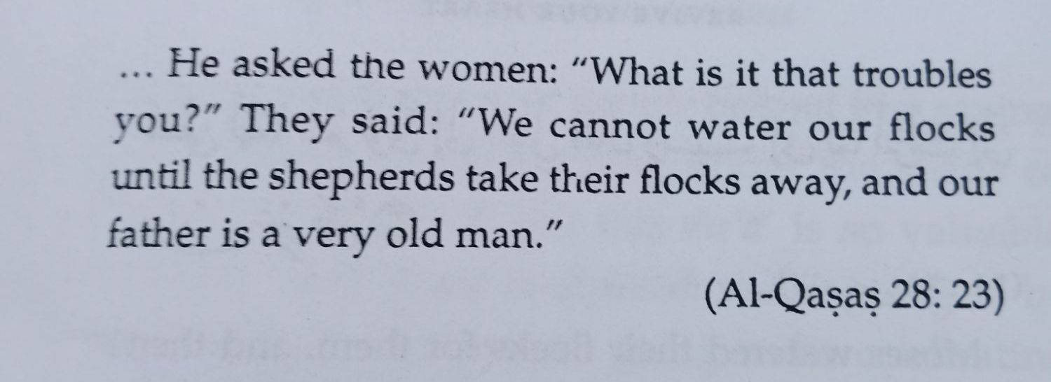So Musa ( alaihi al Salam) doesn’t continue talking to them he actually just grabs the sheep goes to the well, and moves those guys like they were a bunch of insect because he is a very strong man .He fed the animal and brought them back.